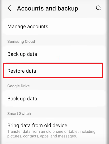 - Wenn nicht gefunden, prüfen Sie Papierkorb und zurücklegen. Oder gehen Sie „Einstellungen > Konto & Backup > Daten wiederherstellen“.