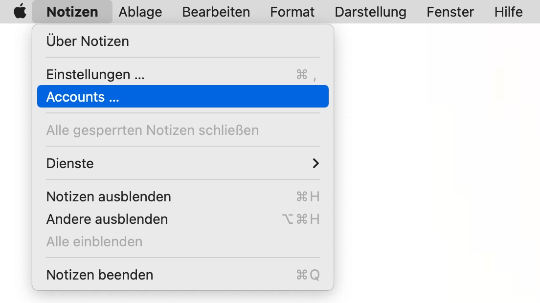 - Klicken Sie auf Notizen > Accounts.