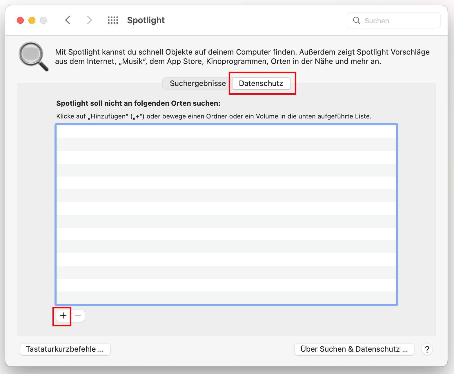 - Nach dem Neustart öffnen Sie wieder Spotlight-Datenschutz und entfernen Macintosh HD aus der Liste.