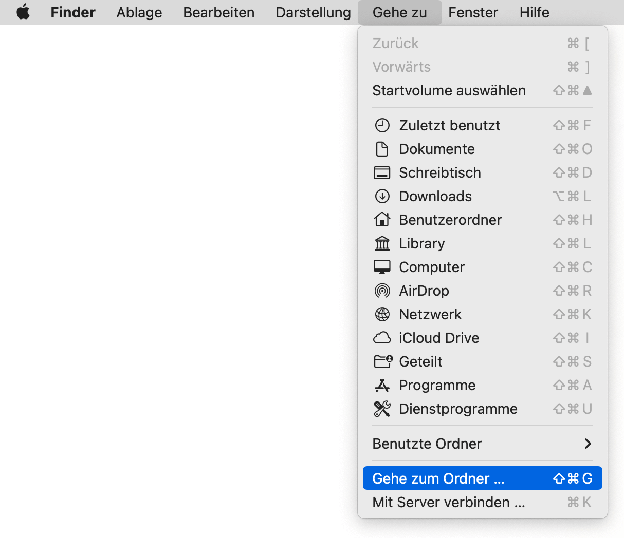 - Gehen Sie in der Menüleiste zu „Gehe zu“ > „Gehe zum Ordner...“.