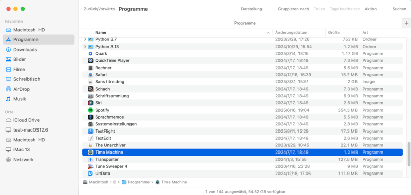 - Gehen Sie zu „Programme“ und starten die App Time Machine.