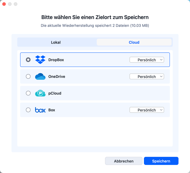 - Stellt Dateien auf lokalen Laufwerken oder Cloud-Plattformen wieder her