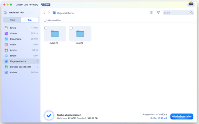 Die oben erwähnte App Cisdem Data Recovery kann Ihnen auch in dieser Situation helfen.