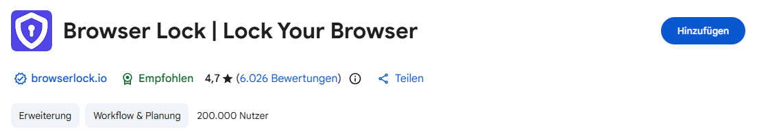 - Suchen Browser Lock in Chrome Web Store und wählen es.