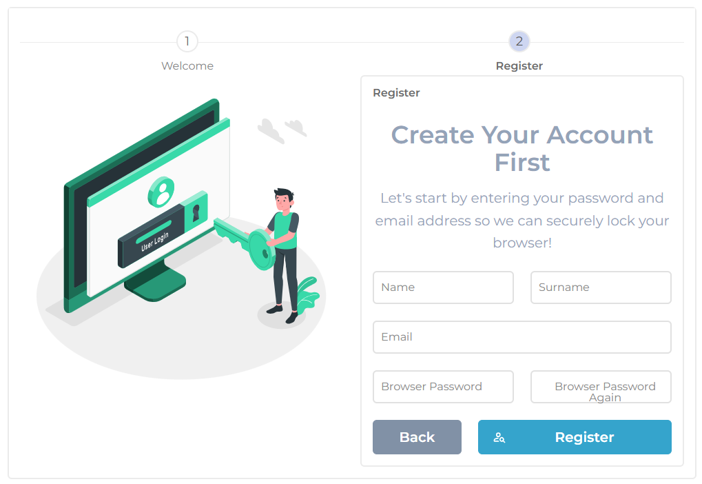- Nachdem Sie registriert haben, bestätigen Sie Ihre E-Mail-Adresse (Browser Lock sendet Ihnen einen 6-stelligen Bestätigungscode).