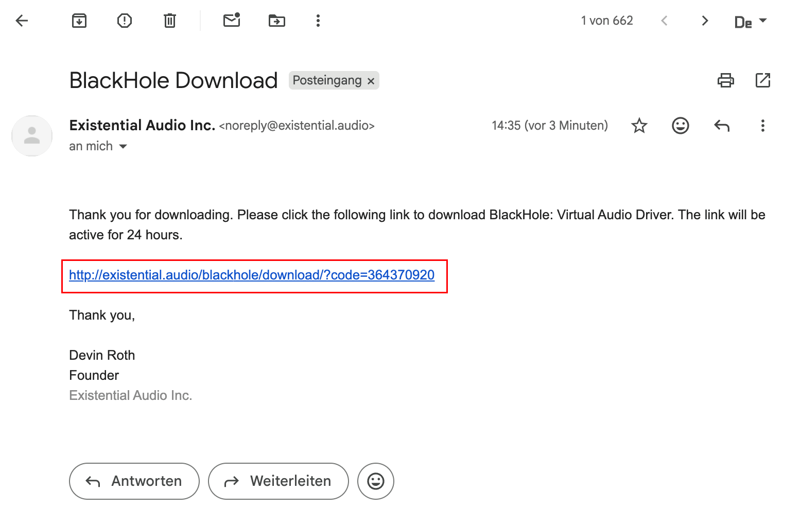 - Sie bekommen einen Download-Link per E-Mail und klicken auf den Link, der 24 Stunden gültig ist.