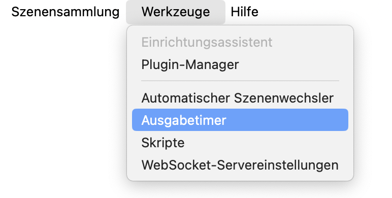 - Klicken Sie auf „Werkzeuge > Ausgabetimer“.