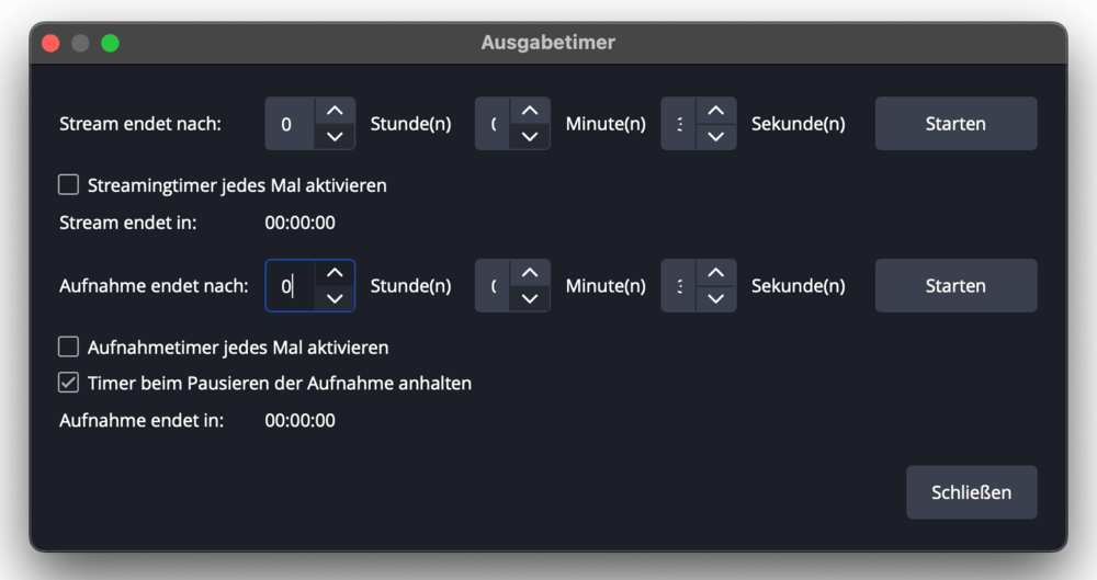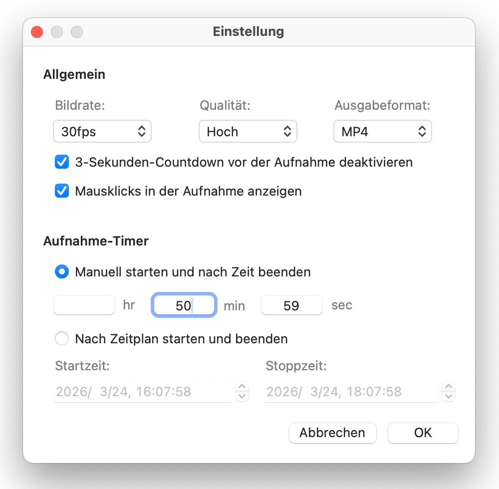 Tipp: Wenn Sie die Aufnahme nach einer bestimmten Zeit automatisch beenden möchten: