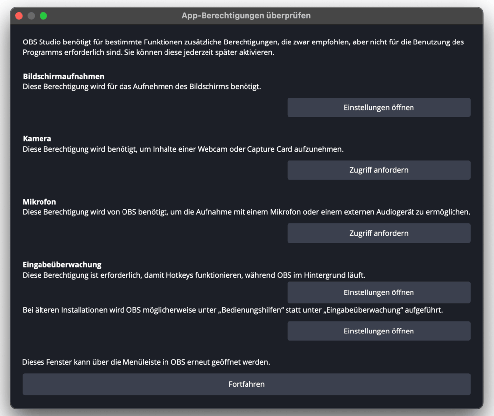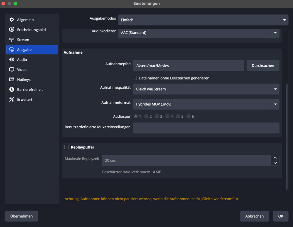 Hinweis: Wenn Sie Hotkeys (Tastenkombinationen) verwenden möchten, während OBS im Hintergrund läuft, aktivieren Sie die Eingabeüberwachung.