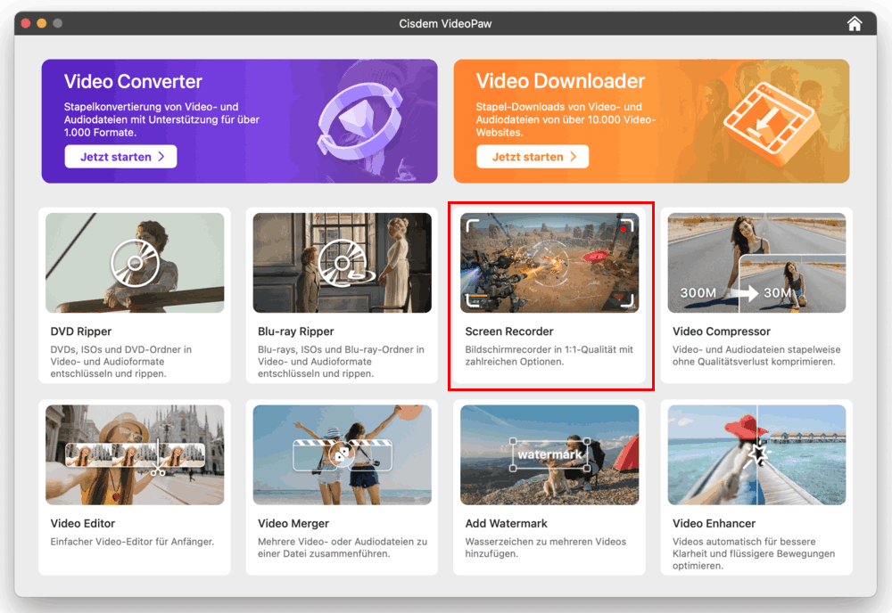 Teil 2. So erstellen Sie einfach Bildschirmaufnahmen mit Ton auf dem Mac mit Cisdem VideoPaw