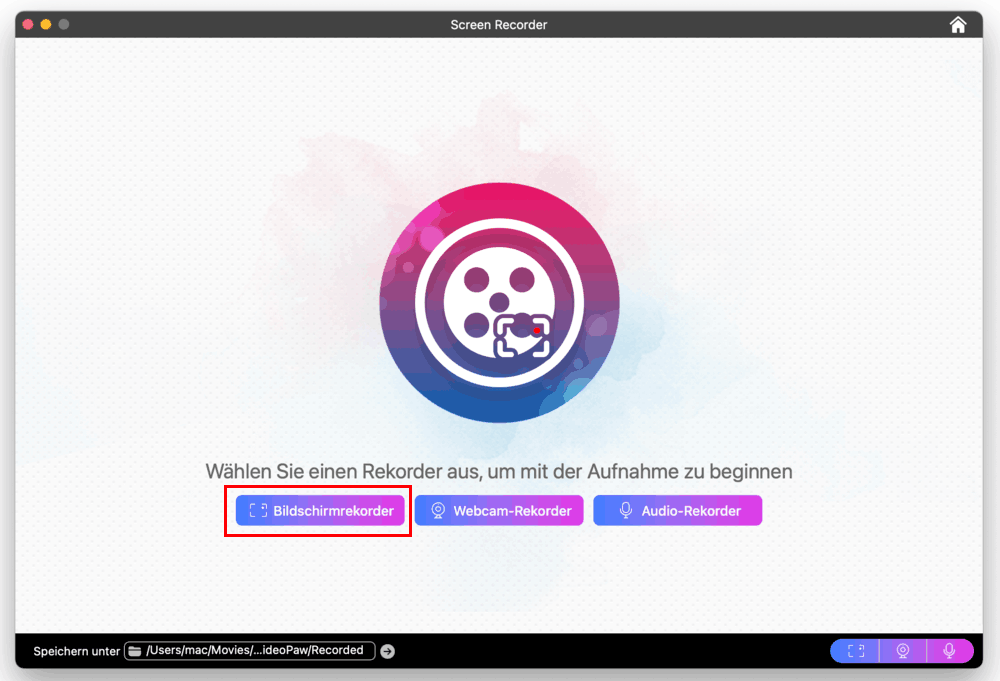 Kostenlos Laden macOS 10.15 oder höher - Öffnen Sie die App und klicken auf „Screen Recorder“.