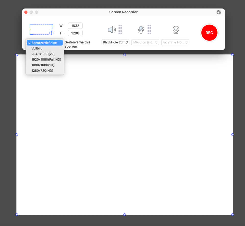 - Klicken Sie auf die rote Schaltfläche REC, um die Bildschirmaufnahme zu beginnen.