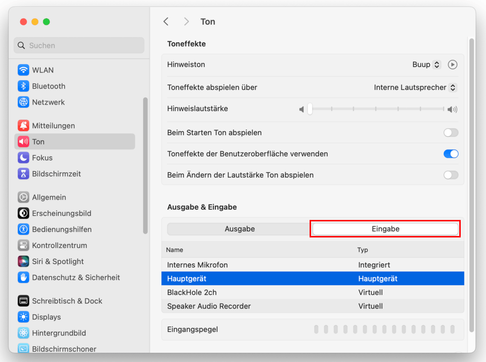 - Öffnen Sie „Systemeinstellungen > Ton“.