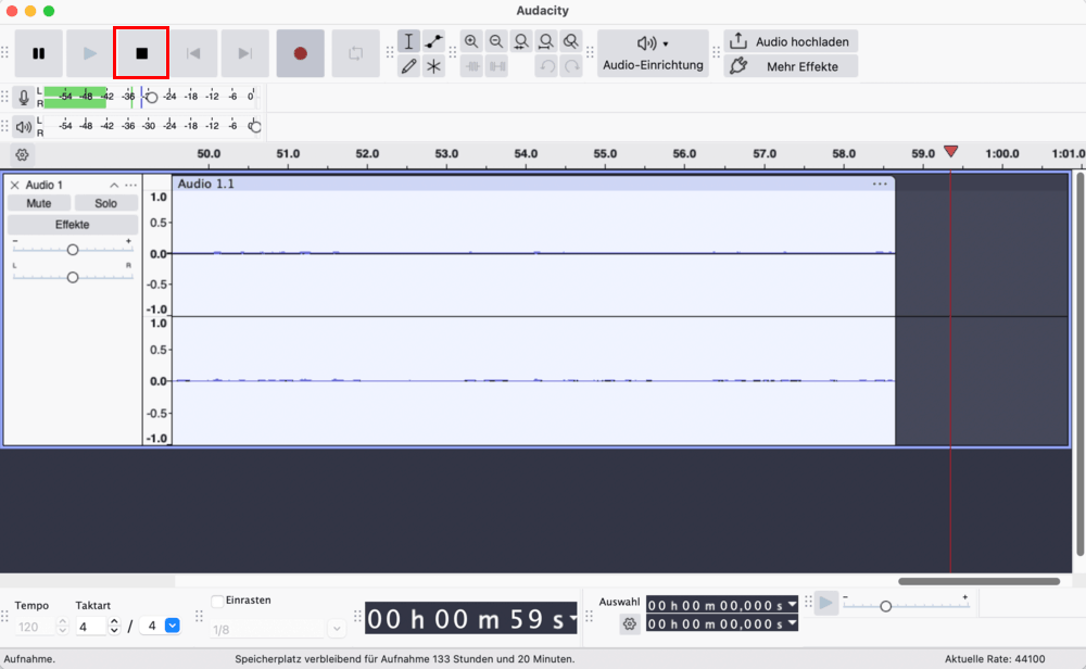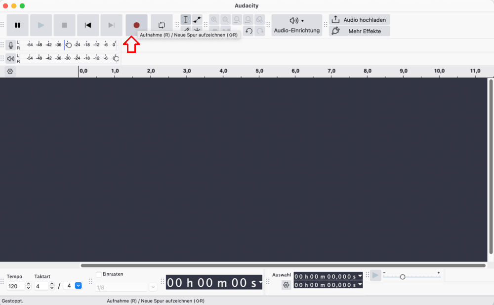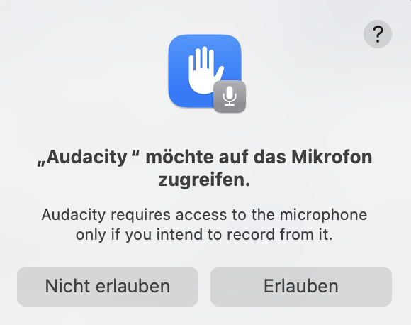 - Starten Sie Audacity und erlauben Sie den Zugriff auf Mikrofon.