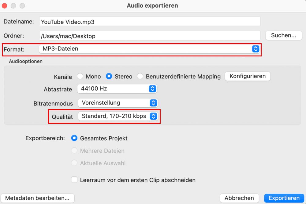 - Gehen Sie zu „Datei > Audio exportieren...“.