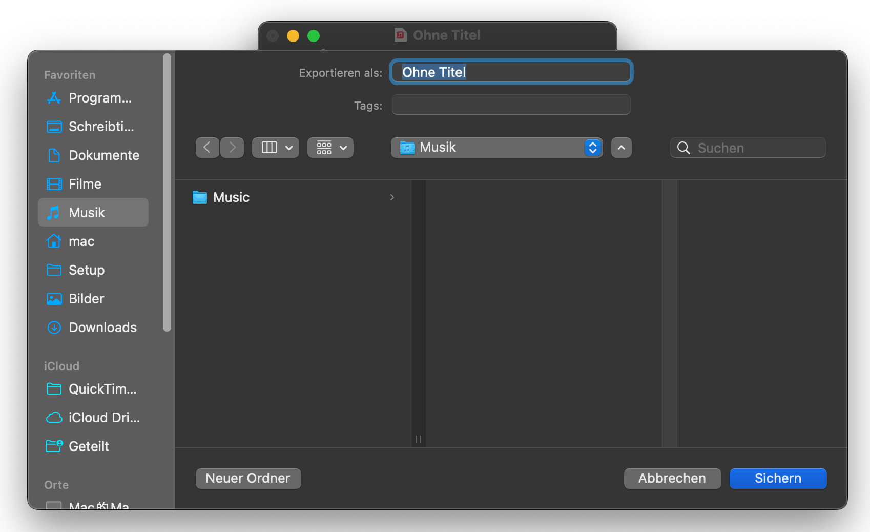 - QuickTime Player bietet zwei Qualitätsoptionen: „Hoch“ und „Maximal“.