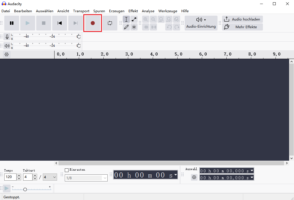 - Klicken Sie in Audacity auf den roten Aufnahme-Button und starten Sie das YouTube-Video.