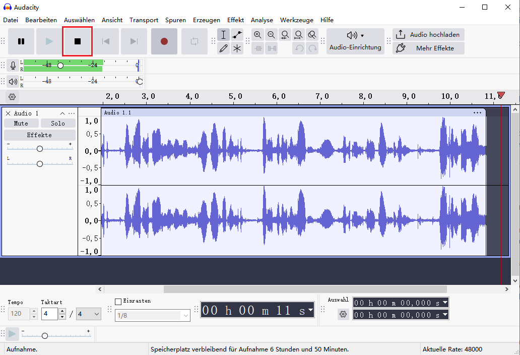 - Klicken Sie auf das rote Stopp-Symbol, um die Aufnahme am Ende zu beenden.