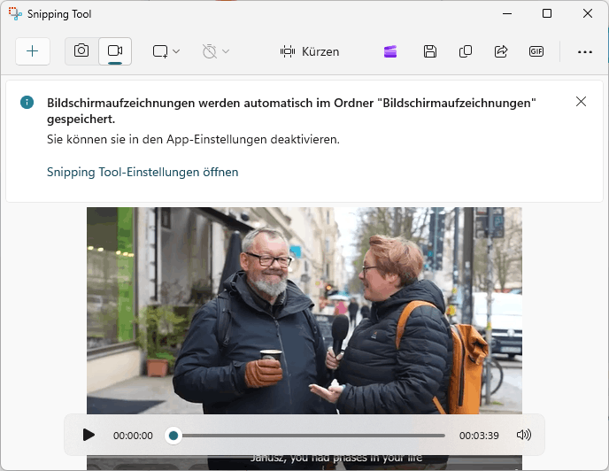 Dieses Tool kann zwar Video und Ton aufzeichnen, speichert die Datei jedoch standardmäßig als MP4-Video und nicht direkt als MP3-Audiodatei. Um den Ton eines YouTube-Videos mit dem Snipping Tool aufzunehmen und anschließend als MP3 zu erhalten, ist ein zweistufiger Prozess erforderlich.