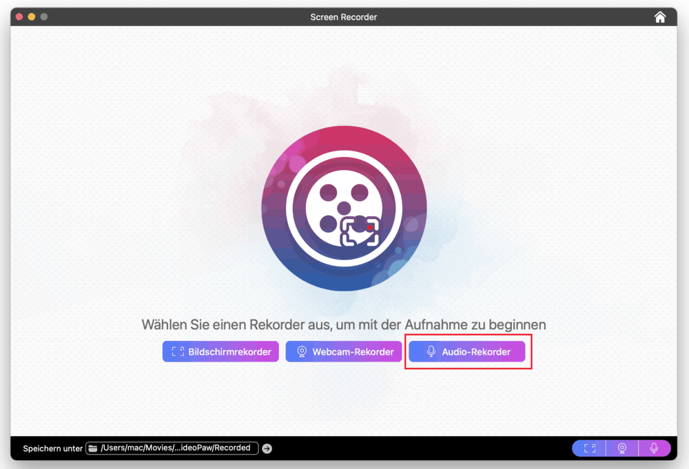 - Öffnen Sie die App und klicken auf „Screen Recorder“.