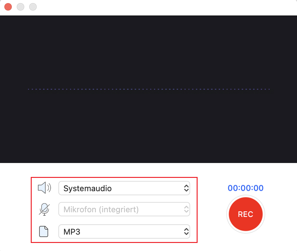 - Wählen Sie Ihre Audioquellen aus. Standardmäßig werden auf dem Mac sowohl Mikrofon- als auch Systemaudio aufgezeichnet. Hier aktivieren Sie nur das Systemaudio.
