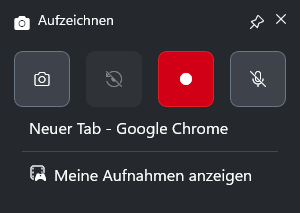 - Klicken Sie im Fenster „Aufzeichnen“ auf den runden Aufnahme-Button, oder drücken Sie „Win + Alt + R“.