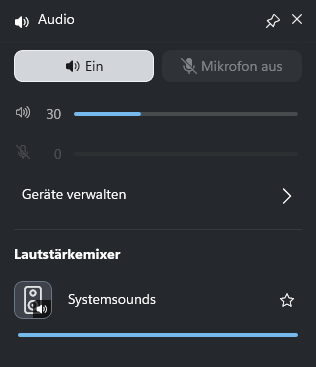 - Es öffnet sich ein Overlay. Schauen Sie im Fenster „Audio“ nach, ob bei „Systemsound“ der Ton an ist.