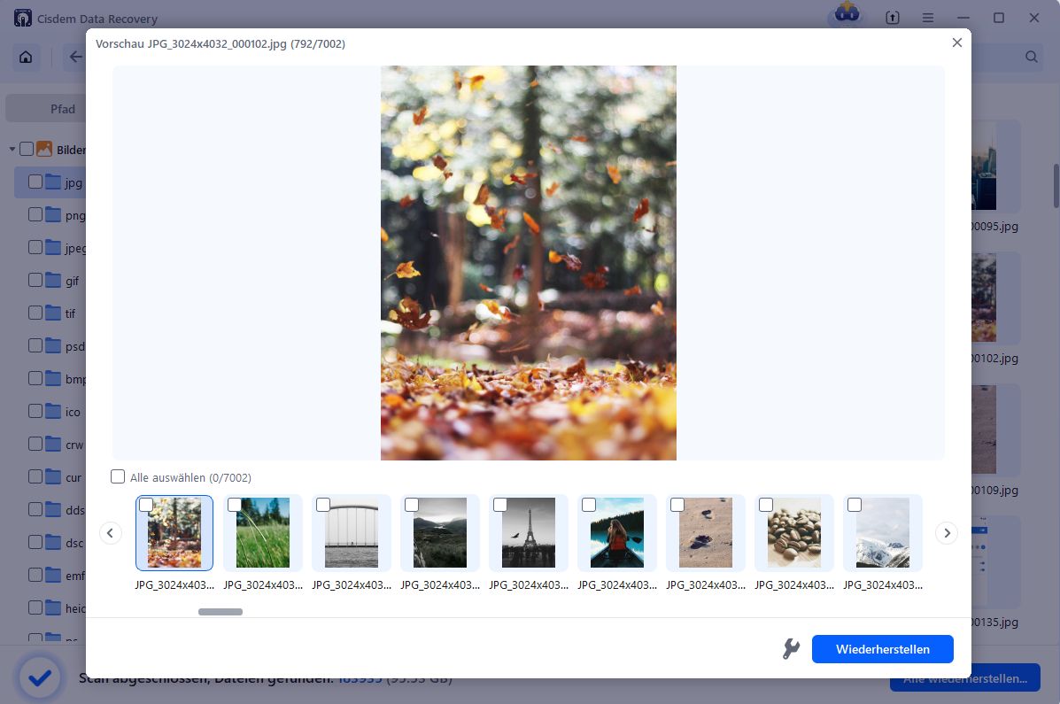 - Vorschau der Dateien vor Wiederherstellen bieten
