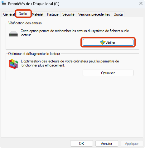 - Sélectionnez « Outils » et puis « Vérifier ».
