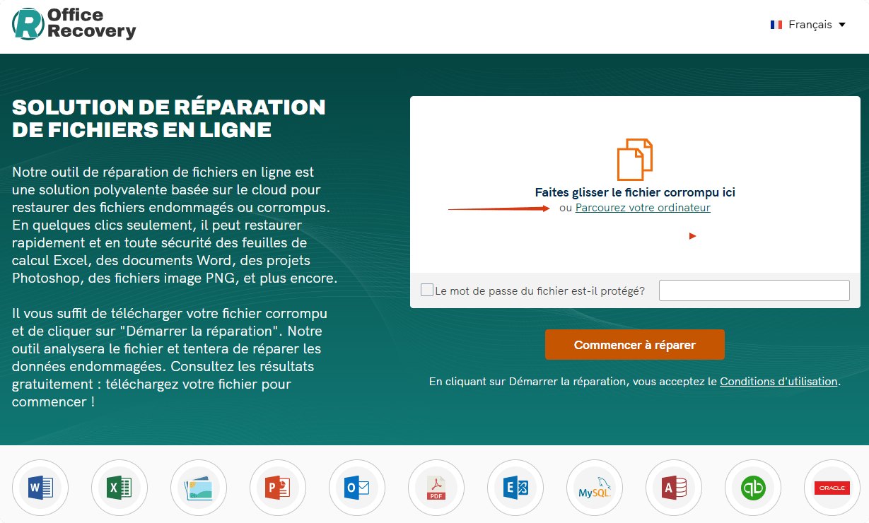 - Déposez les fichiers endommagés dans la zone indiquée.