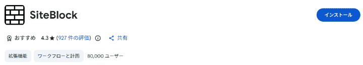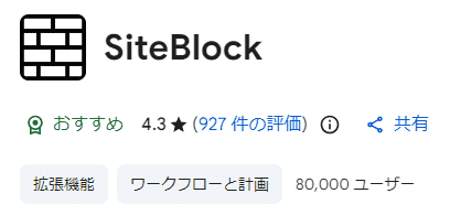 1. Chromeウェブストアで「SiteBlock」を検索します。下図の拡張機能をChromeに追加します。