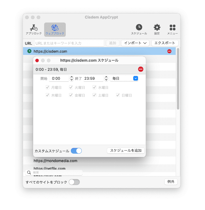 Cisdem AppCryptで特定のサイトにアクセスできないようにする方法