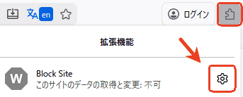 7. あるいは、右上隅の拡張機能のアイコンをクリックして、Block Siteを見つけ、その右にある設定ボタン>「Option」を選択し設定画面に入ります。