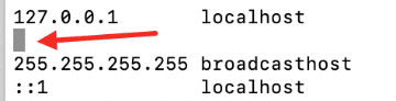 4. キーボードの方向キーを使って「127.0.0.1 localhost」の後ろに移動します。