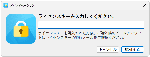 Step 2 ポップアップウィンドウにライセンスキーをコピペして、「認証する」をクリックします。