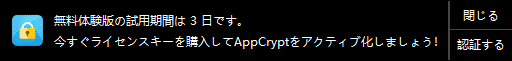 a. デスクトップにあるCisdem AppCryptアイコンをダブルクリックしてアプリを起動します。無料体験版の場合、アクティベーション要請画面が表示されますので、「認証する」>「今すぐ認証する」をクリックしてアクティベート画面に入ります。