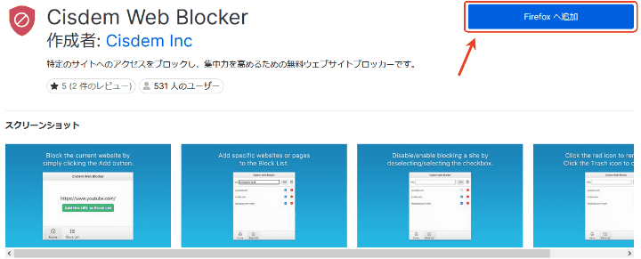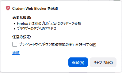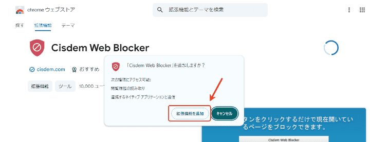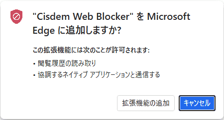 ポップアップ画面が表示された場合、「拡張機能を追加」をクリックして、Cisdem Web Blockerのインストールを確認します。