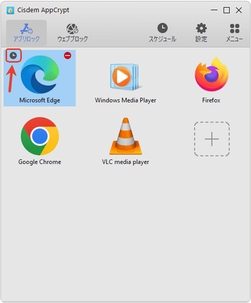 特定のアプリやサイトに独自のスケジュールを設定したい場合は、Cisdem AppCryptのメイン画面に入り、そのアプリ/サイトを選択し、左上隅/左にある