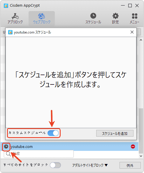 アプリロックとサイトブロックのスケジュールを設定する方法