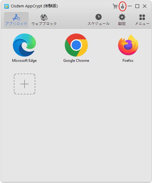 リストにある全てのアプリとサイトにスケジュールを設定したい場合は、Cisdem AppCryptのメイン画面で右上の