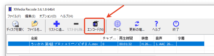 - 「エンコード」をクリックしてMP4に変換し始めます。