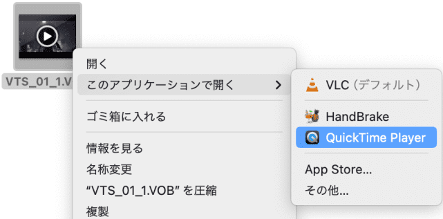 - VOBファイルをQuickTime Playerで開きます。
