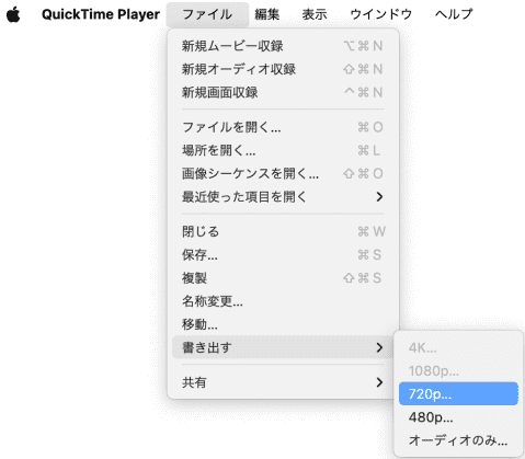 - 「ファイル」>「書き出す」を選択して、出力画質をクリックします。