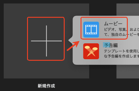 - iMovieを起動し、新しいムービーを作成します。