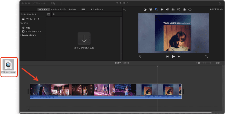- VOBファイルをiMovieに追加します。必要に応じて編集することも可能です。