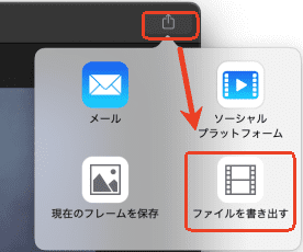 - 右上隅の出力ボタンをクリックして、「ファイルを書き出す」をクリックします。