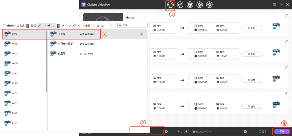 Cisdem VideoPawで複数のWMAをMP3に一括変換する操作手順