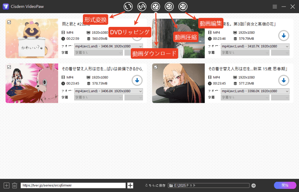 Cisdem VideoPawは、形式変換だけではなく、動画ダウンロード、圧縮、編集、DVDリッピングなどたくさんの機能を搭載しています。