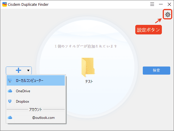 2. 一つまたは複数のフォルダーをソフトにドラッグします。あるいは、プラスアイコン>「ローカルコンピューター」をクリックしフォルダーを追加します。