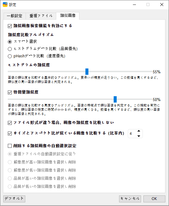- 重複ファイルの自動選択条件をカスタマイズでき、手動選択もできる
